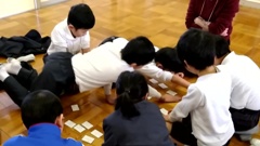 大会は2回戦行われ,各委員会(3~4名1チーム)とも,違う相手と2回競いました。児童たちの中には,各委員会ごとにエースが数名いて,枚数が少なくなった後半は,その力が更に際立ちました。(特に2年生のK君,4年生のSさん,6年生のMさんは圧巻でした。)しかし,これも本人の努力の賜。残念だったチーム(児童)は,また来年頑張ればいいのです。優勝は放送委員会,2位は図書委員会,3位は美化・体育委員会,4位は保健・給食委員会でした。