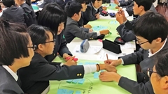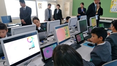 デジタルポケット代表の原田康徳氏を招き,アプリ「ビスケット」(原田氏の作ったアプリ)を通して,5・6年生にプログラミング学習を指導していただきました。児童たちは,自分でプログラムし,キャラクターを動かしていました。うまくできた時は,笑顔で紹介してくれました。プログラミング学習の進め方が分かり,参観した教員にとっても有意義な時間でした。