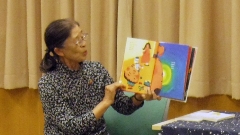 1・2年生が,門前図書館にて,昨年に引き続いて「はまなす文庫」主宰で「宮沢賢治を読む会」の代表でもある細川律子さんをお迎えし,親子読書を行いました。この日は,最初に手遊びを教えていただき,それから「おへそのあな」,「きのこの絵本」,「ふしぎなたいこ」を読んでくださいました。最後に照明を落とし,ろうそくに火を灯し,細川さんが幼少期に聞いたという昔話も聞かせてくださいました。児童たちは,その世界に引き込まれ,よそ見をすることなく,一生懸命聞き入っていました。読み聞かせが終わった後,児童たちは,短い時間ではありましたが,図書館の本を読みました。新しい本がたくさんあり,寸暇を惜しんで読書に勤しんでいました。門前図書館は,学校のすぐ近くにあります。しかし,普段あまり利用していないという児童が少なくありません。今回の機会をきっかけにし,これからどんどん利用してほしいです。保護者の皆様,ご協力よろしくお願いします。お世話くださった図書館の皆様,参加して下さった保護者の皆様,ありがとうございました。