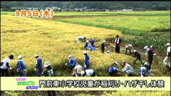 先日の5年生稲刈りの様子が,現在放送中の「わじままるごと情報局」に出ています。是非ご覧下さい。毎日4回放送されています。いつまで放送されるのかは分かりません。