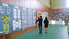 書写,切り絵,工作,手芸。児童たちのたくさんの作品が展示された輪島市民文化祭。地域の方々が次々に訪れていました。会場には,地域の方々の作品も体育館狭しと並べられ,門前の芸術パワーの凄まじさを感じました。