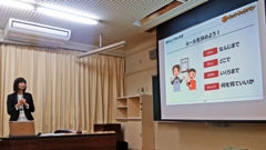 今年は,ティーガイアの山口久美子さんを迎え,スマホなどのメディアとの正しいつきあい方についてお話していただきました。昨年は保護者のみの参加でしたが,今年は5・6年児童も参加。自分のスマホはまだでも,いろいろな機器を使ってネットに繋がっている児童たちにとって,大切な学習となりました。