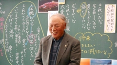 5年は,中橋政久さん。年間を通して,米作りについてお世話下さっています。この日は,地域振興のために取り組んでいることについてお話ししていただきました。