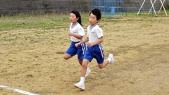 第1区 細川 千(6年)5分37秒 第2区 林 一葉(6年)6分01秒