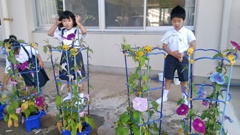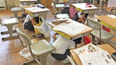 本校では,全校児童が素早くしゃがみ,机の下に身を隠し,指示があるまでじっとしました。その後,4階の集会室に集合しました。今回は,この1ヶ月間で災害が相次いだことから,災害発生時に素早く情報を掴み,必要に迫られたら躊躇無く避難することの大切さを教えました。最後に,最近6年生のMさんが書いた作文(の一部)を紹介しました。