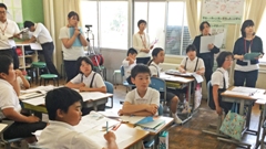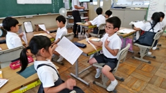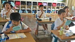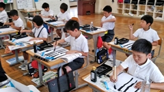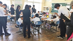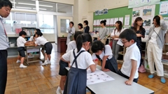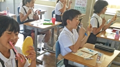 2019年6月13日 15時00分今年も,5年生を対象に参加しました。歯と口の健康週間を中心として,全国のたくさんの小学生や,アジアの小学生も参加しています。今年は,大会DVDを流しながら,クイズに答えたり,実際に,歯,ブラシとデンタルフロスの使い方の実習を行いました。そして,プラークコントロールを身につけ,歯と歯ぐきの健康を保つ方法を考えました。最後には,一人一人「未来宣言カード」を記入しました。(南)