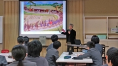 1月19日(土),今年度9回目の土曜授業があり,3回目となる門前西小との5・6年生合同授業も行われました。3時間目は,門前町郷土史研究会会長の大倉克男先生(道下在住)による授業,「とのさまの門前めぐり」。江戸時代,前田のお殿様が,ただ一度,第14代斉泰(なりやす)公の時に門前にお越しになったとのことで,黒島のお台場(異国船を打ち払う大砲があった。),道下の米蔵(米はお金と同価値だった。),深見の桜滝(男滝,女滝がある。),門前の總持寺(現在の總持寺祖院は,この頃は曹洞宗大本山總持寺といい,下寺が全国で16000寺もあったそうです。)を見学なさったそうです。また,当時,門前で馬が盛んに飼育されていたそうで,それを見物し,気に入った馬を2頭金沢城に運ばせたとか。児童の感想もすばらしく,「斉泰は,先祖が大切にしてきた寺をずっと大切にしていてすごいと思った。また,年寄りなどに声をかけていて優しいと思った。」などがありました。