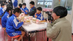 本日の給食には,輪島の海女が手摘みした茎ワカメ入りのスープが出されました。この茎ワカメは,旬の味を通して地域の食文化を伝える目的で,県漁協輪島支所が3キログラム提供してくれたものです。児童たちは,「カリカリとしているけれど,思ったより軟らかくて食べやすく,おいしい」などと箸を進めていました。この日は,2つの新聞社の取材もあり,翌日の北國新聞と読売新聞朝刊に掲載されました。(右写真は,北國新聞に掲載されたものです。)