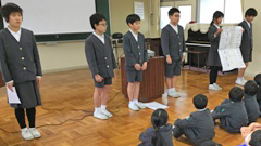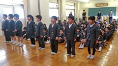 2019年2月15日 13時25分この日の集会では,1月にそれぞれが決めた「今年の目標」を達成するために,どうしていけばいいか考えてもらいました。結果,「目標に向かって一生懸命がんばること=努力すること」という意見が出ました。そこで,努力を重ねたことで目標を達成できた先輩たち(今年活躍しているスポーツ選手5名)の紹介をし,「自分もそうなりたい=そのために努力していこう」という気持ちを喚起しました。あとは彼ら自身に委ねるしかありません。成果が上がるのを期待して待つとしましょう。