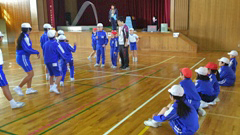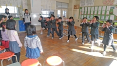 くしひ保育所のまつぐみ(年長)さん7名(1名欠席。本来は8名。)が本校へやってきました。楽しみにしていた1年生との交流会です。もともと1年生全員がくしひ保育所から来たことから,お互いが顔なじみ。最初からいい雰囲気で会は進みました。学校クイズ,音楽・体育発表,プレゼント渡し,学校案内。あっという間に時間は過ぎていきました。特に年長さんたちが驚いたのは,縄跳びでした。「小学生になったらすごいことができるようになるんだな。」そんな4月からの小学校生活に大きな期待が膨らんだ年長さんたちでした。