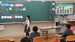 1年算数(左写真)は,図を使って,全体の数の大きさを計算する式を考える学習でした。