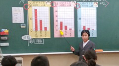 3年算数(右写真)は,1目盛りの大きさが違うことに着目し,グラフの大きさを比較する学習でした。