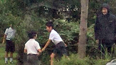 不審者対応は,近年の最重要訓練の一つとなっています。昨年度も,県内のある地域では,短期間に繰り返し不審者が現れ,対応訓練も必要に迫られたものとなっていました。今年度も,ピストルを持った不審者が校地内に侵入し殺傷事件を起こすなど,心配の種は尽きません。そこで本校では,今年度の不審者対応訓練を,休み時間に行いました。この日はいい天気。長休みには,多くの児童たちがくし比の森で遊んでいました。そこへ黒ずくめの人が現れて・・・。児童が,その人を不審者と理解するのにさほど時間はかかりませんでした。避難開始です。児童たちから情報を得た職員は,警察に連絡。同時に児童に向けて,体育館に避難するよう放送しました。別の職員は,刺股を所持し,くし比の森へ急行。不審者と対峙しました。すぐに警察官(門前交番の藤本さん)も駆けつけてくださり,不審者は,無事取り押さえられました。