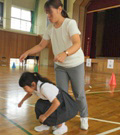 その後,不審者役の警察官の方(輪島警察署生活安全刑事課生活安全係長の泉警部補)にいろいろ教えていただき,最後に不審者に捕まった際の脱出方法(ロケットダッシュ)の練習を行い,この日の避難訓練を終了しました。いざという時がもしあれば,この日の訓練で身につけたスキルを活かし,「自分の命は自分で守る」ためしっかり行動してください。