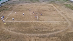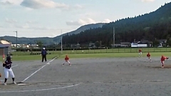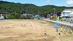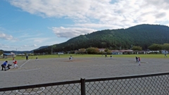 輪島市町野野球場にて,6年生が引退してから初めての公式戦がありました。現在の門前クラブは,5年生主体の新チーム13名中,10名が門前東小の選手です。相手は大屋少年野球クラブでした。残念ながら勝つことはできませんでしたが,終盤まで1点を争う白熱したゲームでした。次の大会こそ,1勝,そして優勝といきましょう。(右写真は,本校の5年T君がヒットを打った瞬間です。打球は,写真上部に写っています。)