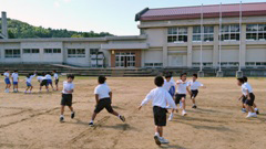 9日(火),長休みの運動場。この日は週2回の校内マラソン大会の練習日。児童たち,しっかり走っています。本番は22日(月)です。当日は,沿道での応援,よろしくお願いします。