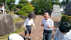 久しぶりに気持ちよく晴れた本日,運動場で児童たちが遊んでいました。何やら地面に線を引いて遊んでいます。聞いてみると,「田んぼ」という遊びなのだそうです。そういえば,引かれた線が,漢字の「田」でした。楽しそうだったので,私もいっしょに混ぜてもらいました。