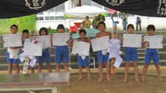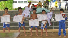 熱戦につぐ熱戦。大相撲なら確実に水入りとなるような取組もありました。特に,徳俵を活かして最後の粘りを見せる児童が多く,逆転勝ちも多く見られました。「小よく大を制す」も。また,この日は低学年部女子を除き,各学年部男女別に「3人抜き」も行われ,大いに盛り上がりました。