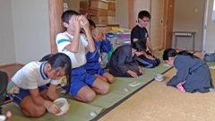 茶道クラブは,担当の田下先生のお作りになったおいしいお茶請け(大学芋とクッキー)をいただいた後,お茶をいただきました。私はおいしかったのですが,児童にはさすがに苦いだろうと思いきや,皆,「おいしい。」とのこと。すばらしい。