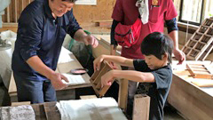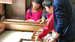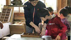 子供たちからは,「紙がどうやってできるのかわかった」「たのしかった」「おいしかった」などの言葉がありました。また言葉だけでなく,自然の中にあるものにたくさん興味を持ち,草花や枝,ほおづきなどを手に取り,ただ遊ぶだけでなく,これなんだろう?ここには何があるんだろう?とキラキラとした目で,自然の中から学ぶ姿もありました。これらのことから,おのおのが五感をフル活用して自分たちの住む能登の自然や暮らしを十分に感じられる機会となりました。(船本)