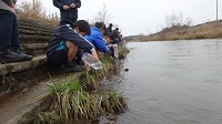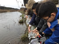 2学期の終わりから飼っていたヤマメの卵が孵化したので、川に放流しに行きました。