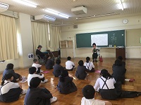 子どもたちはお話を聞いて、「麦屋節がいろいろなところに伝わっていてすごいと思った。」など、自分の中でいろいろな思いを感じている様子でした。