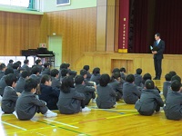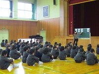 12月の全校集会では、1年生の学年発表がありました。