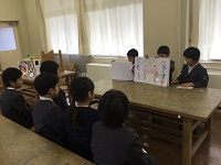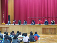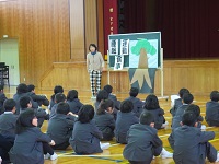 3年生が総合的な学習の時間で学んだ門前地区に伝わる民話を2年生に発表しました。
