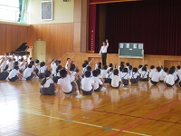 5月22日(月)、2限目に3名の講師の方をお招きし、今年も「能登は門前 寺のまち 出湯まち」の指導をしていただきました。1年生は初めてですが、その他の学年の児童は2度ほど踊るとコツを思い出したようです。当日は保護者の皆様方も是非積極的な参加をお願いします。