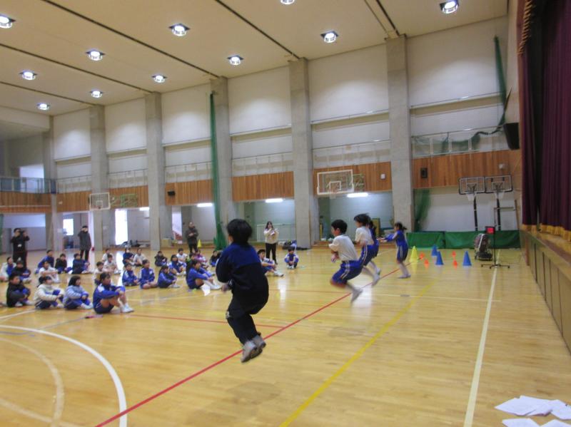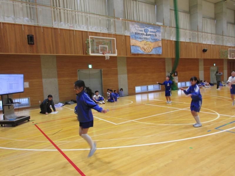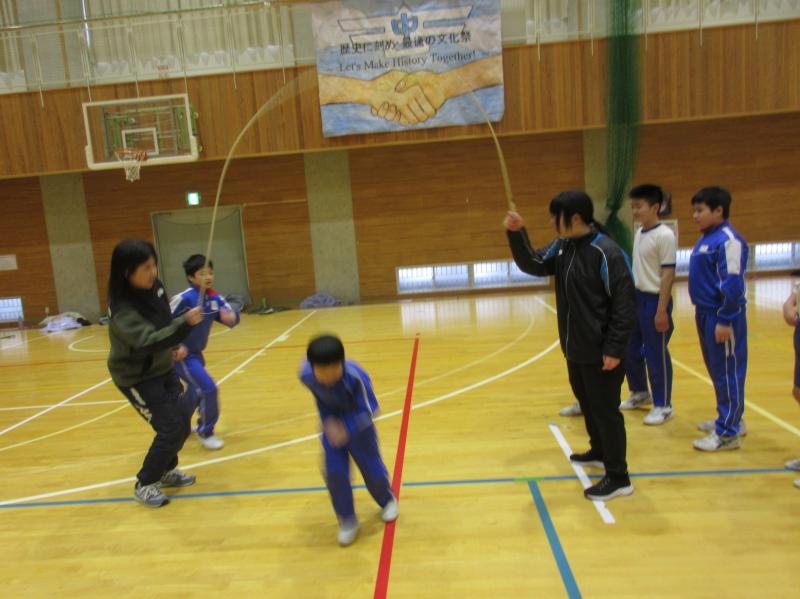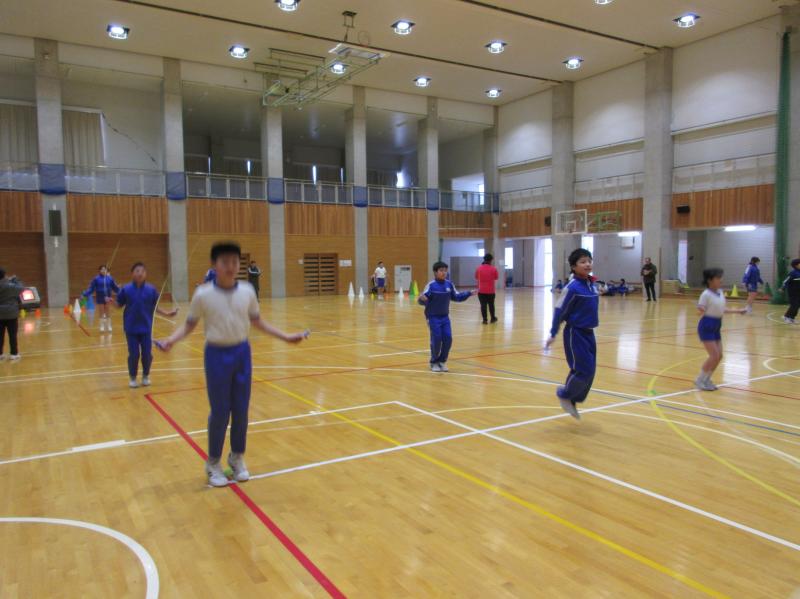 2026年1月29日 12時56分なわとび大会がありました。縦割り班対抗の「持久跳び」「個人跳び」「8の字跳び」では、どの班も友達を応援しながらよく頑張っていました。すご技ひろうの時間では、難易度の高い技を披露する児童に拍手喝采でした!これからも、縄跳び練習を続けて、自己記録を更新しましょう。