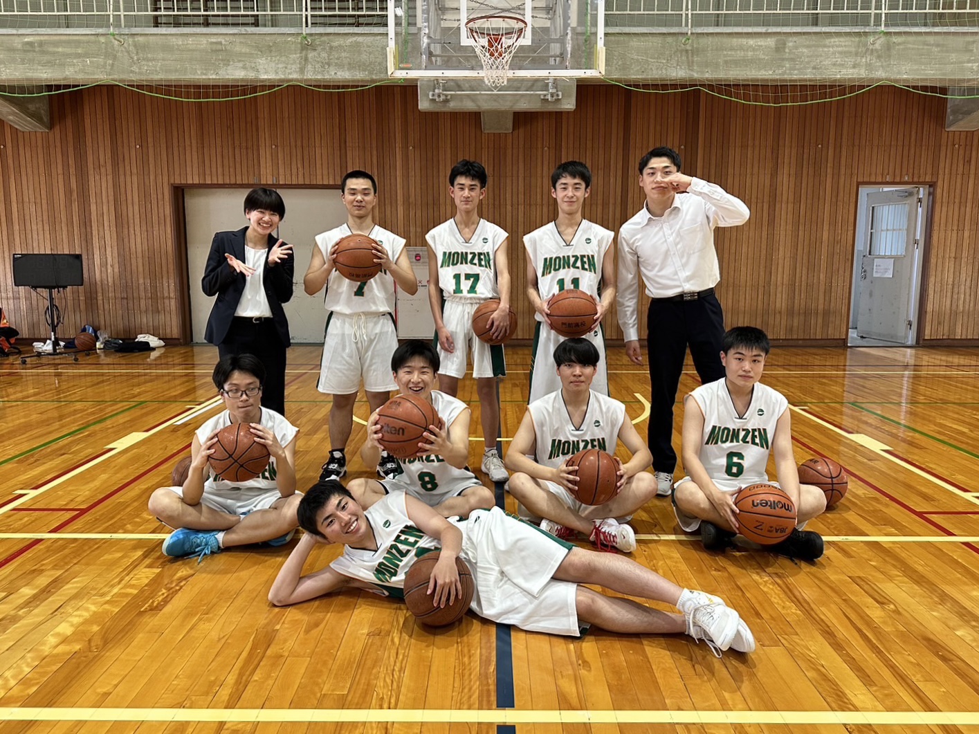 私たち男子バスケットボール部は、新入生4名を迎え、現在計8名で活動しています。定期的に門前中学校と合同練習をし、地域の方による外部指導も受けています。 |