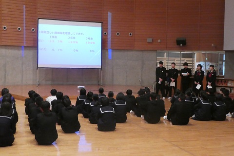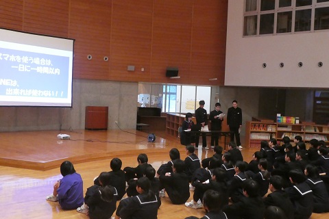 生活健康委員会の生徒が朝,スマホの使い過ぎと学力の相関関係についてプレゼンをしてくれました。