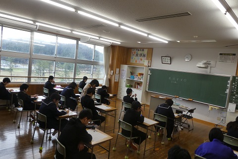1年生と2年生は市内統一の英単語100問のテストに臨みました。