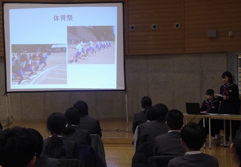 英語の体験授業の後は,生徒会執行部の生徒が中心となって中学校生活を紹介しました。