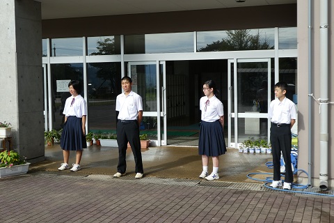 今日,生徒玄関では生徒会執行部と各部活動のキャプテンが元気な挨拶をしてくれていました。