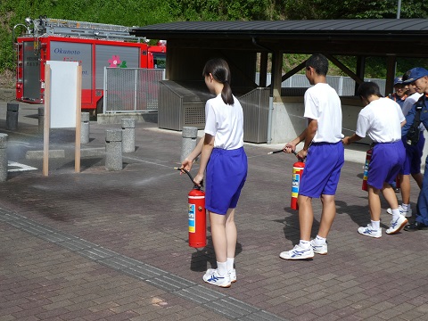 訓練後には,門前分署の方からお話をしていただき,消火訓練も行いました。