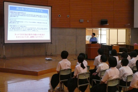 6限目に輪島警察署の鈴木さんをお招きして,犯罪から身を守るためのお話をしていただきました。