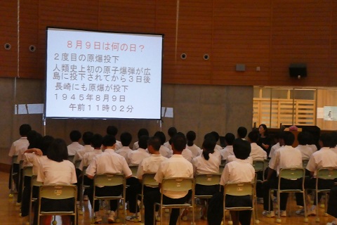 本日,8月9日は長崎に原子爆弾が投下された日であるため,平和集会を開きました。