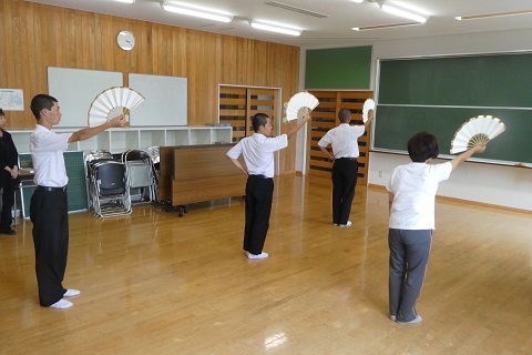 保存会の方々も来てくださり、踊り、唄などのパートに分かれて練習をしました。