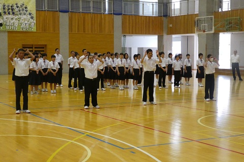 28日(金)に行われる壮行式の応援練習がお昼に行われ、校歌や応援歌の練習をしました。