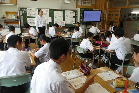 2限目に本校で東陽中の2年生と合同で社会の授業を行いました。