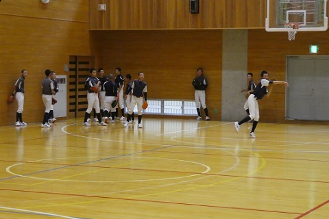 大雨のため試合が17日(月)に延期となった野球部は、体育館で最終調整を行いました。