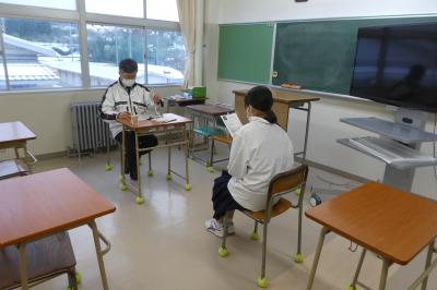 日曜日に行われる英語検定3級の二次試験の面接練習を、門前高校の先生方に