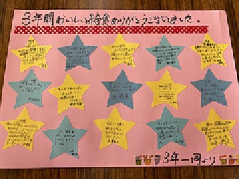 3年間おいしい給食を作ってくださってありがとうございました。