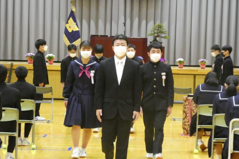 本日、58回目の卒業式がありました。15名の生徒が伝統ある門前中学校を巣立っていきました。
