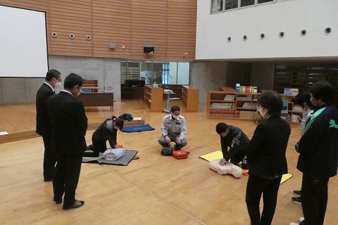 先日、門前分署の方に来ていただき、職員が救急法講習を受けました。