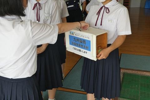 生徒会が3日間かけて行った九州豪雨支援金募金では,14,074円の支援金が集まりました。