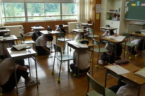 どの学年もスムーズに机の下にもぐり,頭部を守ることで被害を最小限に抑えることができたと思います。