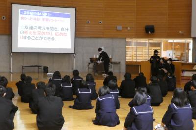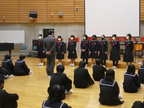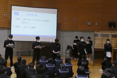 始業式の後には門中ミーティングを行い、生徒からは1月の生徒会委員会活動について、