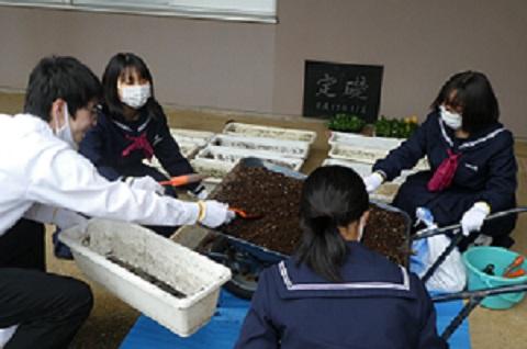 寒い中、土を運び、穴を掘り、苗を丁寧に植えました。